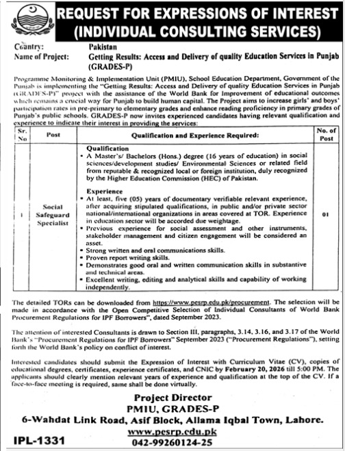| Title | Publication Date Posted | Advertisement | TORs / JD | Addendum/ Corrigendum | Deadline | Status |